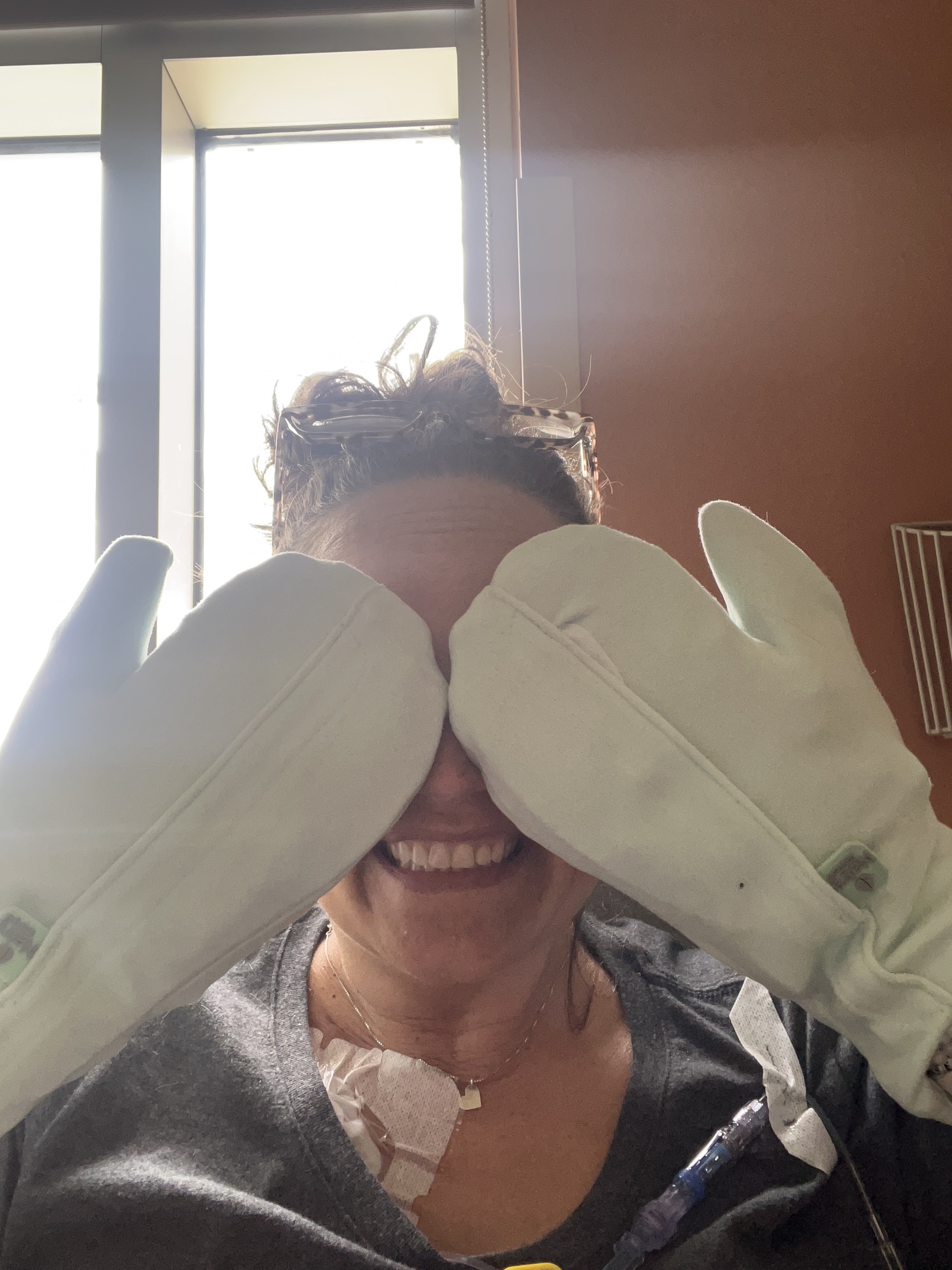 First timer here. Thank God, for Alex. He was my RN for this first chemotherapy infusion day. He is a gift of a human - and I cannot thank him enough for his support, knowledge, patience and witty banter. Being new to this whole treatment business, no one really knew how my body would react - yet that didn't stop my body. We had twitching, and swelling, tingling and more swelling and the twitching, then the water turned to slime and my uncertainty rose. Alex handled it with a tidal wave of calm. He handled it with ease and confidence. He educated, and told stories, and laughed and just sat with us until it was time to go home. Then, he gave me flowers, in a surgical glove vase, and told me he knew I could do it.